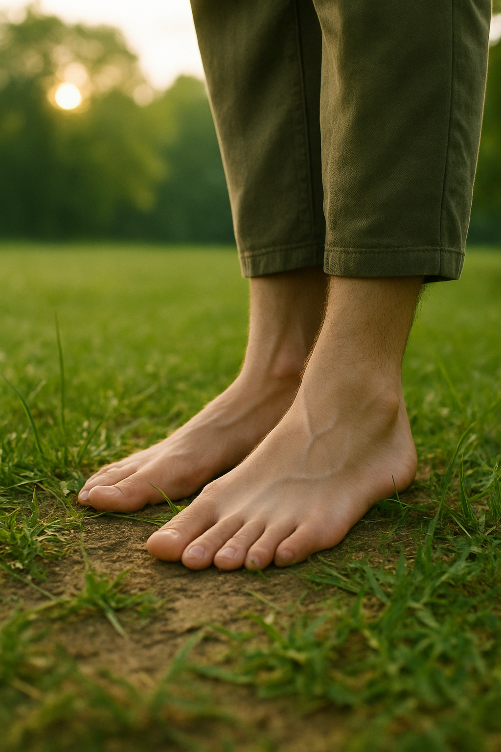 Grounding, also known as "earthing," is the practice of making direct physical contact with the surface of the Earth — like walking barefoot on grass, soil, or sand — to absorb the Earth's natural electrical charge.