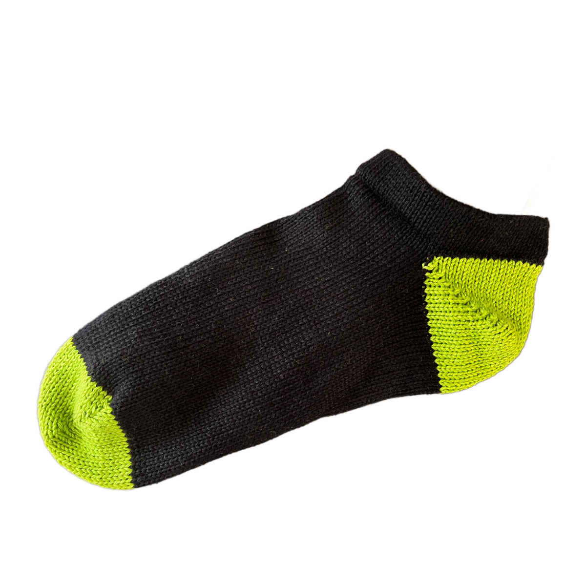 Men's 100% Cotton Low Cut Ankle Socks Black Color with Green Heel and Toe